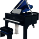 - - Finition extérieure & intérieure : Laque piano noire brillante - Intérieur du couvercle : Voie lactée bleu nuit et bleu indigo peinte à la main avec une précieuse constellation d’étoiles et les points cardinaux en incrustation de nacres - Porte-partition et bâton de couvercle en damier noir et blanc fait de Corian - Ouverture du couvercle en boîte à musique - Accastillage et lyre fuselée an acier nickelé - Table d’harmonie laquée dans une laque noire brillante - Feutres de cordes en bleu nuit - Banquette de concert assortie “Satellite” avec une structure en bois laqué en bleu indigo et noir brillant reposant sur trois pieds, réglable en hauteur.